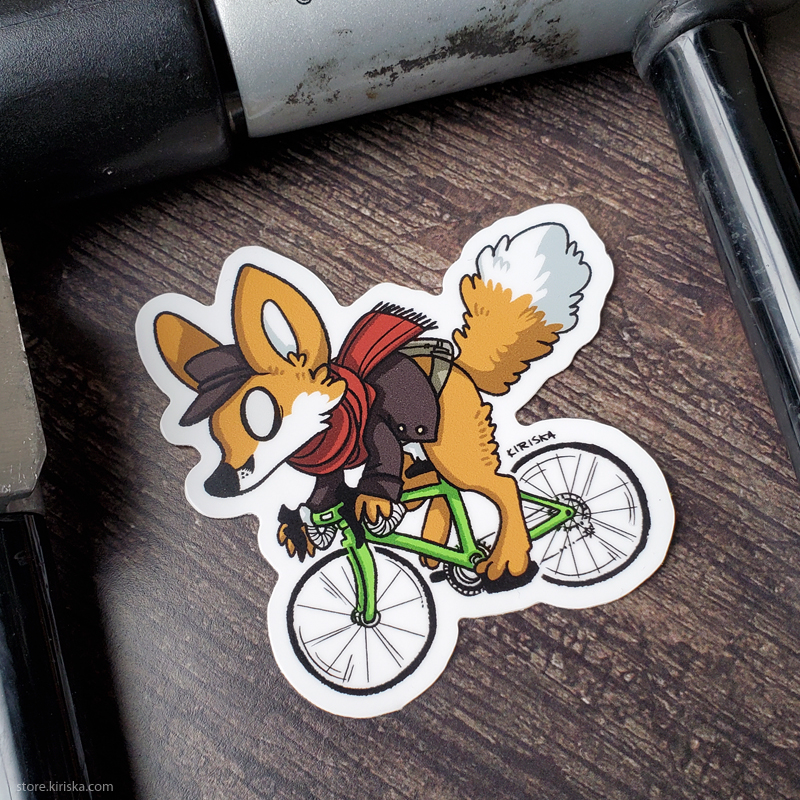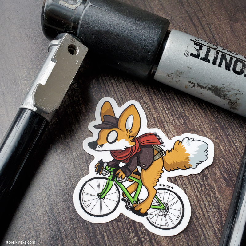 3″x3″ vinyl sticker of a fox on a bike! They’re probably a commuter.
